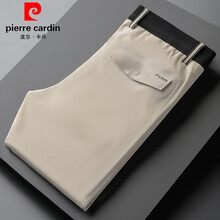 皮尔卡丹轻奢品牌 2021夏季轻奢冰丝滑弹力休闲裤男休闲修身小直筒轻薄凉爽运动西装裤针织 杏色 30