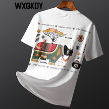 WXQKDY潮牌轻奢休闲短袖T恤男 夏季新品男士个性后背印花修身半袖上衣男时尚青年轻薄圆领百搭T恤男 白色 M