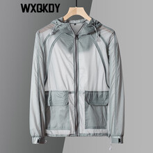 WXQKDY潮牌轻奢夹克男 夏季新款男士韩版潮流修身连帽长袖上衣男时尚青年网孔轻薄透气纯色运动外套男 灰色 M