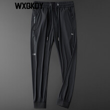 WXQKDY潮牌轻奢青年休闲裤男 夏季轻薄男士冰丝滑料弹力运动长裤男时尚百搭修身透气收口袋拉链束脚裤 黑 29
