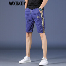 WXQKDY潮牌轻奢休闲短裤男 夏季新品男士个性刺绣印花轻薄五分裤男潮流青年百搭修身运动户外直筒裤男 蓝色 28