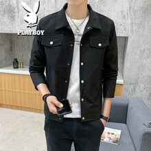 花花公子夹克男士外套上衣春秋冬季新款潮流休闲简约青年韩版百搭立领大众工装风修身轻薄品牌男装流行服饰 黑色 M