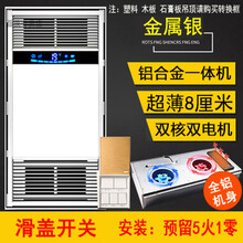 超薄浴霸6cm卫生间风暖5三合一排气扇照明一体集成吊顶浴室暖风机 全铝款8CM金属银(滑盖开关)