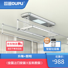 欧普(oupu)电动晾衣架 智能遥控四杆晾衣机 阳台自动升降集成吊顶晒衣架自然风干 太空银(经典款)四杆+LED照明