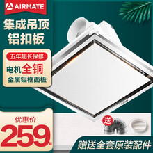 集成吊顶换气扇/适用于铝扣板300300吊顶/防水适用潮湿环境/防逆流止回阀/吊顶管道式排风/银色铝框面板/安静稳定运行/升级大风量/全国联保整机一年电机五年