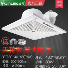 金羚天花排气扇600x600集成吊顶换气扇厕所排风扇大功率工业抽风机卫生间石膏板吸顶换气扇 600X600面板普通吊顶(80w402风量)