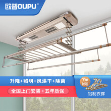 欧普(oupu)电动晾衣架 升降横杆阳台智能遥控自动集成吊顶伸缩晒衣杆机 op-10玫瑰金 四杆+照明+烘风干+消毒+横杆