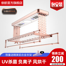 依航 电动晾衣架升降横杆阳台智能遥控自动集成吊顶伸缩晒衣杆机 F8金色 四杆照明+杀菌+风干+烘干+负离子净化