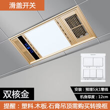 风暖浴霸集成吊顶多功能五合一嵌入式led灯浴室卫生间暖风机浴霸 豪华金/双核动力/滑盖开关