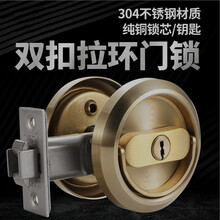 304不锈钢双面隐形门锁 球形锁 背景墙卧室带钥匙暗藏嵌入式拉手 拉丝金/小黑锁舌60MM