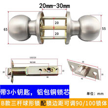 球形锁球头门锁球形锁 门三杆锁 卫生间塑钢门锁厕所通用三柱式球锁 不锈钢【铝芯小匙】配90-100调舌 门厚(2公分-3公分)