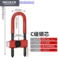 u型锁玻璃门锁办公室门插锁双开门加长锁商铺市锁U行大号定做 308C-26锁距12.5-18.5厘米