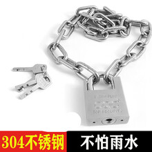 自行车锁链条锁 304不锈钢链条锁车防剪防盗车锁大门锁链子镀锌铁锁加粗 6mm链条0.8米防剪锁