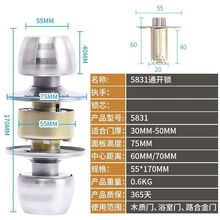 房门锁球形锁卫生间房间浴室锁卫浴锁单舌门锁不锈钢圆球锁木门锁 球形锁【无钥匙款】 中心距60mm【舌长5厘米】