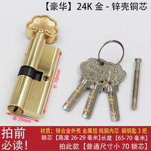 室内房门锁锁芯小70卧室房间门锁铜锁芯木门通用型执手锁锁心锁头卧室门锁门锁室内 【豪华】24K金-锌壳铜芯 35-50mm 通用型 带钥匙