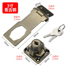 带锁锁牌锁扣卡扣门锁办公桌抽屉柜门锁搭扣衣柜锁家用锁具免开孔 3寸青古铜【单开】