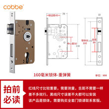 卡贝锁体家用室内卧室锁舌门锁配件通用型木门锁房门锁具锁心把手 160MM-重弹簧-舌距88MM(封闭静音) 35-50mm 通用型 不带钥匙
