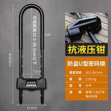 2021新款门面锁 玻璃门锁密码u型锁有框推拉双开双门插锁防剪防盗门锁长锁门面锁 黑色(内长35cm)