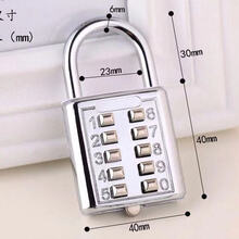 按键锁密码锁合金属挂锁不锈钢固定锁健身房衣柜锁大门锁头防盗锁 银色 按键密码锁【大号十位数字】