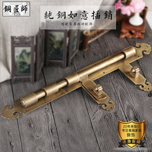 铜匠师 老式大门锁木门铁门双扇锁中式仿古加粗加厚纯铜插销门栓家用五金如意门闩户外复古门扣古铜挂锁搭扣 50cm古铜色(不配锁)