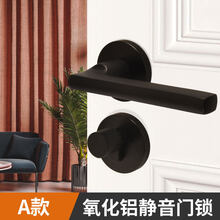 卧室门锁室内通用型欧式静音房间木门黑色锁家用磁吸门锁房门把手 A款静音门锁 35-50mm 通用型 带钥匙