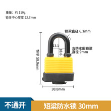 橡胶不锈钢防水锁头防盗电力挂锁户外铜锁挂锁防雨防锈锁车位门锁 [不通开]短梁30MM防水锁3把钥匙