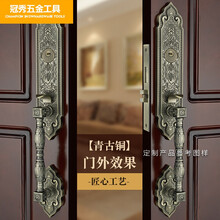 通用欧式豪华别墅大门锁复古子母门双开门对开门锁实木防盗办公室门锁仿古家用豪华门锁定做 【青古铜 】 -真锁一套 35-50mm