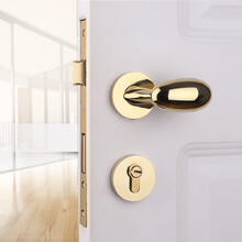 九仕丹顿美式门锁pvd金色轻奢室内房门锁鸭鹅蛋形把手黄古铜静音磁吸门锁 金色 35-50mm 通用型 带钥匙