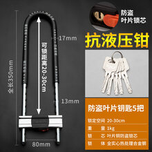 门面锁 玻璃门锁u型锁锁具大全u形锁插锁玻璃锁推拉门长锁商铺u锁型室外 升级加粗款黑【350mm】5把钥匙