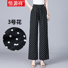 恒源祥中年休闲裤女中年女裤夏季直筒裤大码显瘦妈妈装波点高腰阔腿裤花色冰丝休闲裤 3号花 XL(2.1-2.3尺)(建议105-115斤