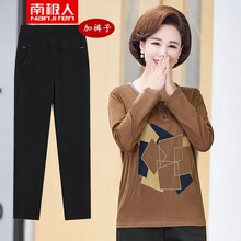 【特价捡漏】南极人中老年女装宽松短袖T恤大码T恤胖妈妈装中年上衣夏装减龄洋气小衫中年妈妈穿的凉快便宜 咖啡+裤子 XL(建议100斤左右)