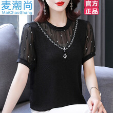 麦潮尚雪纺衫女夏季2021新款时尚夏装洋气短袖衬衫女遮肚子上衣中老年妈妈装气质小衫新品 黑色 M