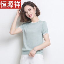 恒源祥【精选品质】女装高端轻奢高端短袖妈妈夏装2021年新款薄款天丝冰丝针织小衫时尚气质上衣新款时尚 浅绿 S