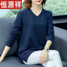 恒源祥【精选品质】女装高端轻奢2021新款秋装妈妈长袖宽松T恤加肥加大码常规款上衣中老年全聚酯纤维打 宝蓝色 M