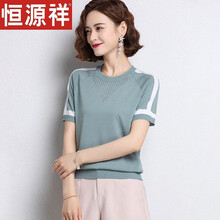 恒源祥【精选品质】女装高端轻奢高端冰丝短袖夏季2021新薄款宽松显瘦圆领时尚洋气常规款针织上衣新款时 豆绿色 S