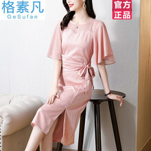 格素凡大牌轻奢中青年真丝连衣裙女夏季2021新品高端桑蚕丝大码妈妈装高贵洋气显瘦百搭裙子女装潮F3 图片色 M