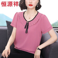 恒源祥【精选品质】高端轻奢时尚21年新款气质显瘦年夏季新款中年妈妈大码宽松雪纺衫女时尚洋气T恤上衣3 紫红色 M