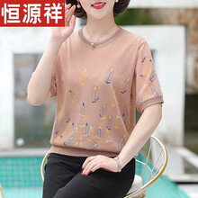 恒源祥【精选品质】女装高端轻奢妈妈夏装两中老年春装宽松上衣中年人短袖T恤衫洋气套装XL110斤内新款 驼色 XL(110斤内)