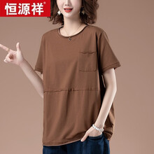 恒源祥【精选品质】女装21年短袖T恤咖色纯色棉短袖t恤女2021新款大码宽松汗衫妈妈遮肚子上衣显瘦体 咖啡 XL