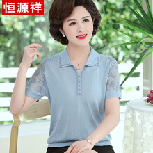 恒源祥【精选品质】t恤女妈妈穿妈妈短袖t恤夏装纯色翻领洋气体恤上衣服40-50中老年带领汗衫旗舰官方 浅蓝色 M建议85-100斤穿+运费险