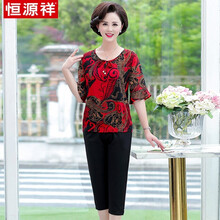 恒源祥【精选品质】妈妈夏装套装新款洋气中年短袖雪纺21年T恤套装母节衣服旗舰官方店特价上新 红色 XL
