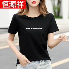 恒源祥【捡漏特价】棉布t恤女短袖21年夏季新款半截袖女装体恤衫上衣宽松t桖潮半袖真品牌优选丝 黑色 XXXL