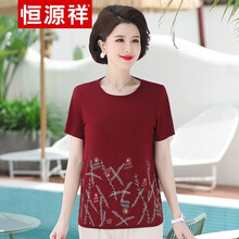 恒源祥【精选品质】高端轻奢时尚中年妈妈夏装短袖T恤套装中老年棉汗衫宽松上衣洋气两XL斤内新款时尚旗舰 红色 XL(斤内)