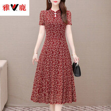 雅鹿 旗袍改良版碎花连衣裙2021夏季新款气质高贵优雅中年妈妈装长裙子轻奢韩版显瘦时尚女装 大红花旗开得胜送考服妈妈穿 5XL旗开得胜送考服妈妈穿