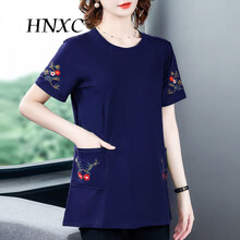 HNXC支持!国产鸿·星尔克中老年加肥加大码女装夏装短袖T恤胖妈妈装200斤中长款宽松上衣女 蓝色 M 【建议100斤内】
