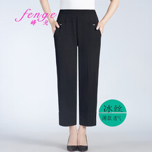 中老年女装冰丝薄款休闲裤女2021夏季新款时尚休闲妈妈装弹力女裤中老年人宽松大码高腰松紧腰直筒九分裤 黑色 XXL建议2尺3--2尺4
