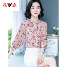 雅鹿 高档轻奢品牌高档轻奢品牌雪纺上衣T恤女雪纺中袖上衣七分袖女装春春装2021新款遮肉妈妈碎花仙雪 图片色 S