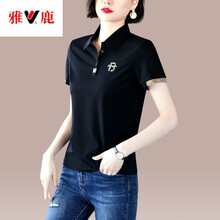 雅鹿 高档轻奢品牌POLO领T恤女士短袖翻领t恤女短袖棉2021新款运动衫休闲薄款夏季宽松带领pol 黑色 M