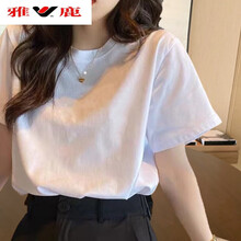 雅鹿 品牌捡漏特价国潮短袖T恤女白色半袖上衣圆领宽松休闲新款棉中国薄款体恤夏 白色 S