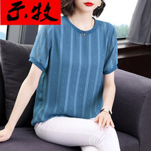 示牧品牌女装妈妈装短袖雪纺衫女2021年夏季新款遮肚子上衣洋气时尚气质小衫潮 雾霾蓝 M